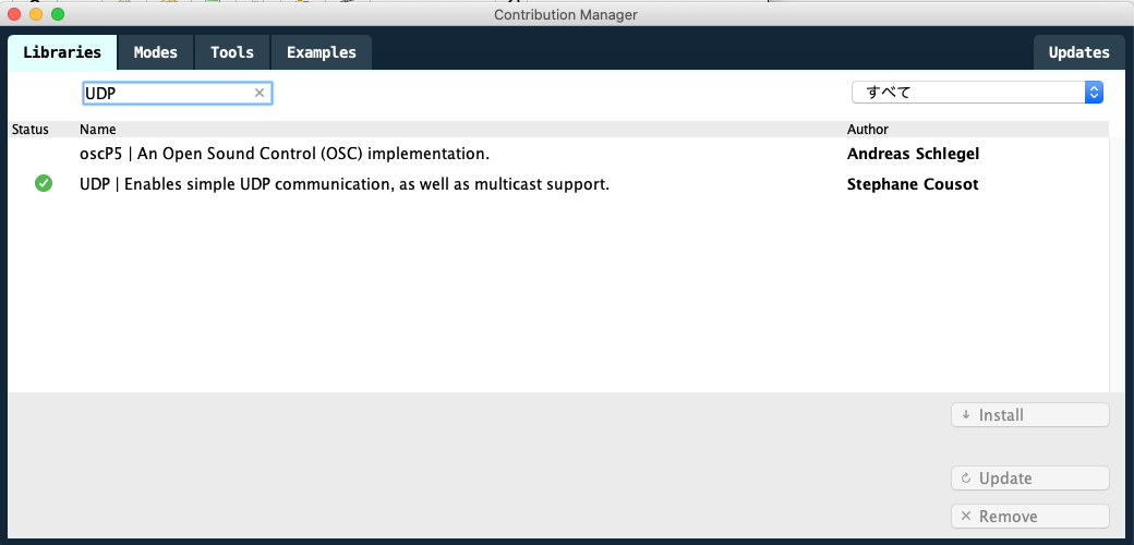 次にProcessingではUdpライブラリをインストールします.