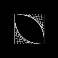 size(200, 200); background(0); stroke(255); strokeWeight(1); noFill(); beginShape(POINTS); for ( int i = 0; i < 100; i++ ) { vertex(50, 50+i); vertex(50+i, 150); vertex(150, 150-i); vertex(150-i, 50); } endShape(CLOSE);