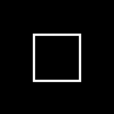 size(500,500); // 画面サイズ 500 x 500 px background(0); // 背景色:黒 rectMode(CENTER); // 描画モードは中心を基準にする noFill(); // 塗りつぶしなし strokeWeight(10); // 線幅を10pxに stroke(255); // 線色を白に rect(width/2,height/2,200,200); // ウィンドウ中心位置に200x200[px]で四角を描画