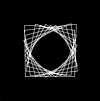 size(200, 200); background(0); stroke(255); strokeWeight(1); noFill(); beginShape(POINTS); for ( int i = 0; i < 100; i++ ) { vertex(50, 50+i); vertex(50+i, 150); vertex(150, 150-i); vertex(150-i, 50); } endShape(CLOSE);