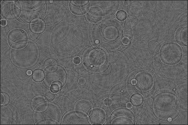 int cols; int rows; float[][] current; float[][] previous; float damping = 0.99; void setup() { size(600, 400); cols = width; rows = height; current = new float[cols][rows]; previous = new float[cols][rows]; } void mouseMoved() { previous[mouseX][mouseY] = 2055; } void keyPressed() { save("output.png"); } void draw() { background(0); int x = (int)random(0,(int)width); int y = (int)random(0,(int)height); previous[x][y] = random(2000); loadPixels(); for ( int i = 1; i < cols-1; i++ ) { for ( int j = 1; j < rows-1; j++ ) { current[i][j] = ( previous[i-1][j]+ previous[i+1][j]+ previous[i][j-1]+ previous[i][j+1])/2.0 - current[i][j]; current[i][j] = current[i][j]*damping; int index = i + j * cols; pixels[index] = color(100-current[i][j]); } } updatePixels(); float[][] temp = previous; previous = current; current = temp; }