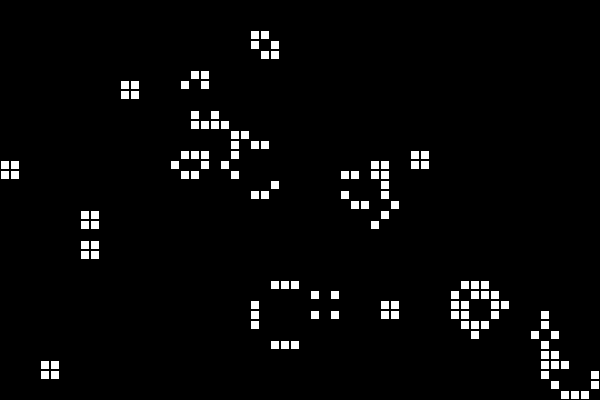 - 死んでいるセルに隣接する生きたセルがちょうど3つあれば、次の世代が誕生する。